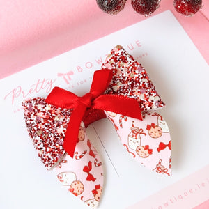 Each bow is carefully crafted with attention to detail, featuring an abundance of glitter, sequins, and shimmering accents that catch the light beautifully. Available in classic Christmas colors such as rich reds, golds, greens, and silvers, these bows are perfect for adding a touch of holiday magic to gifts, decorations, or even as a chic accessory.