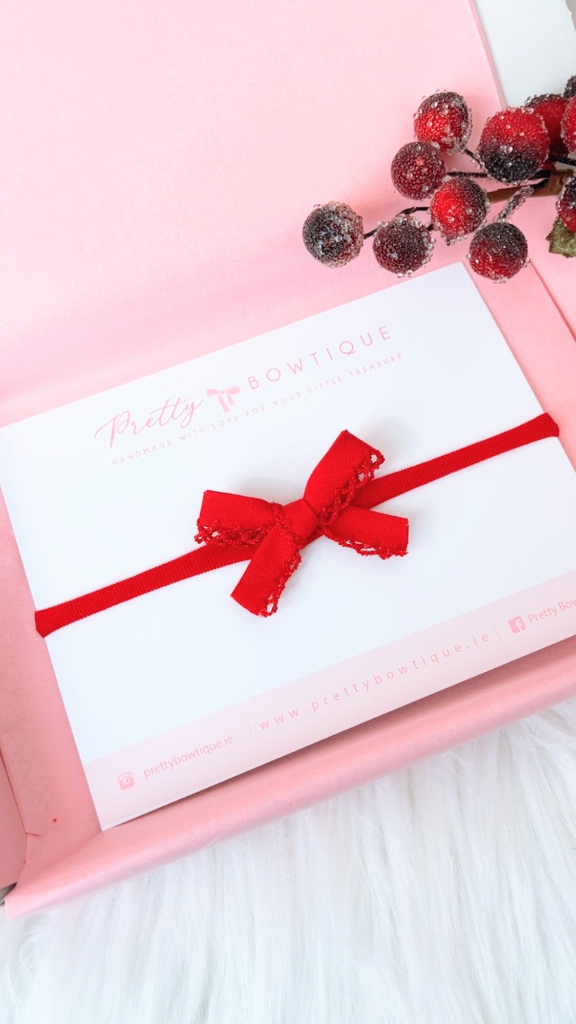 2 inches in size. Fitted to a super soft red headband. Suitable from birth.